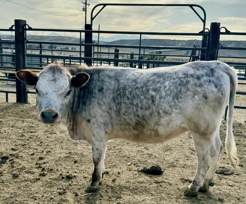 Meet Millie! This babe is a naturally polled beltie herefrod cross with an amazing disposition! She's super tiny! Her calves have the most playful personalities!