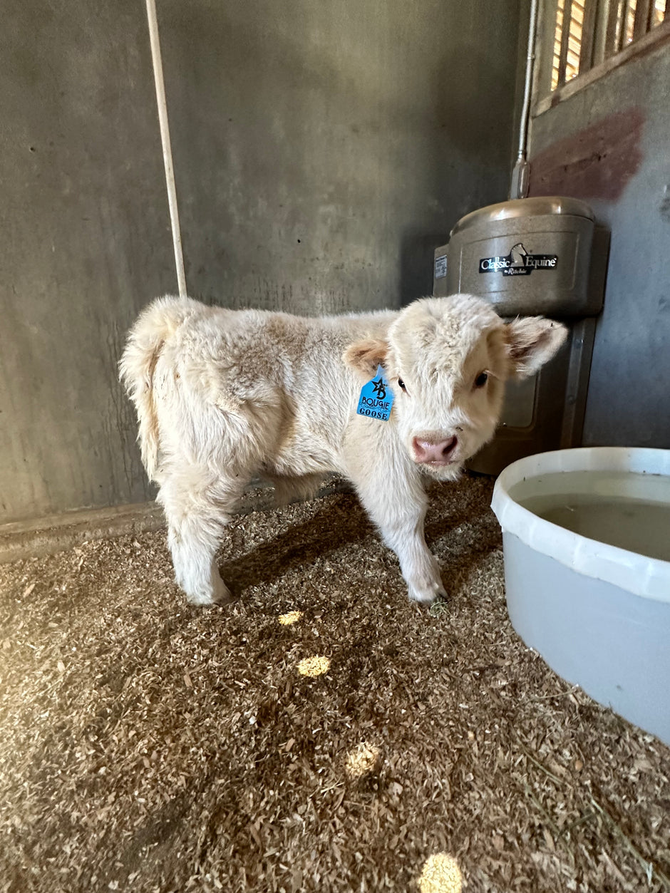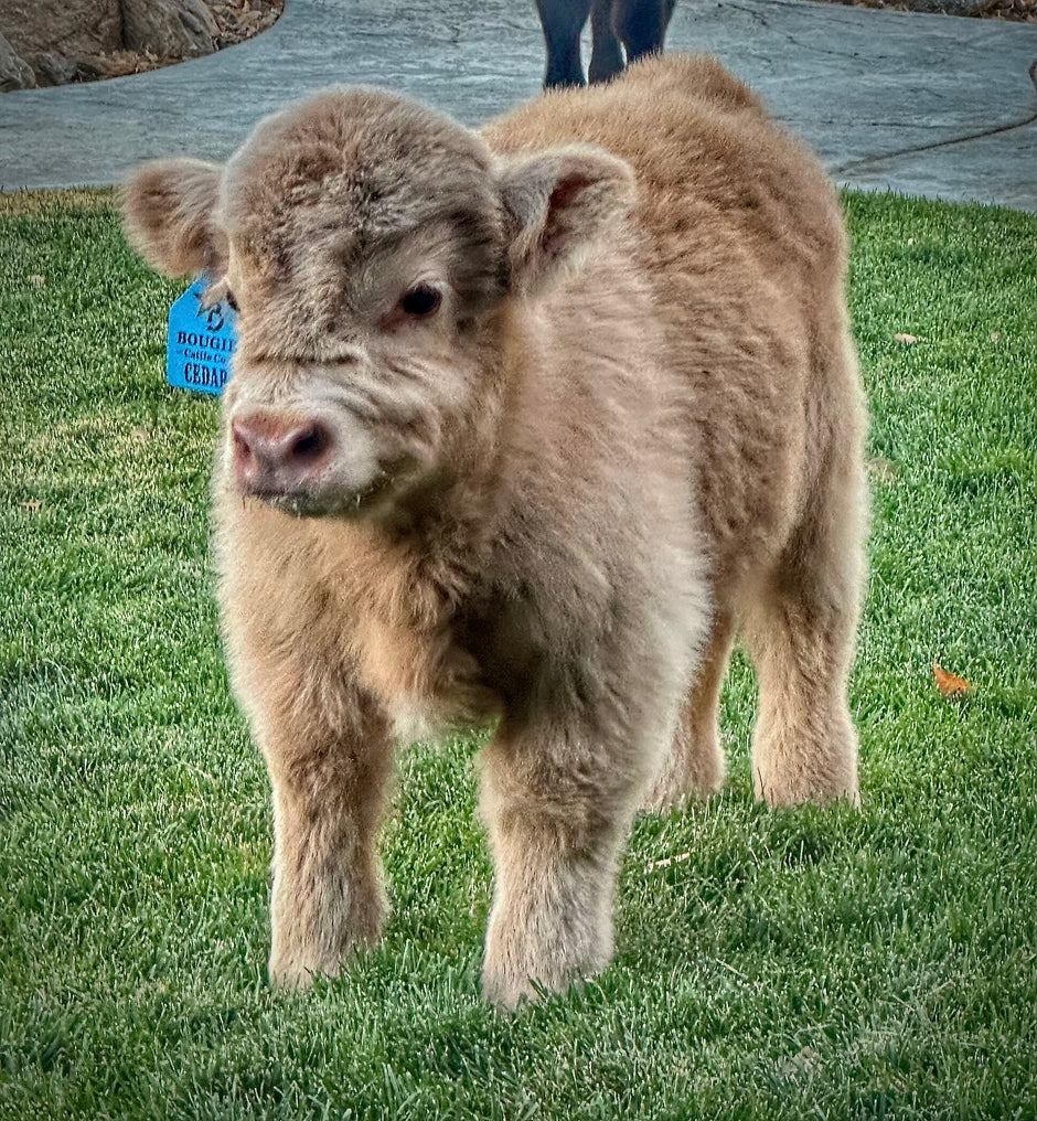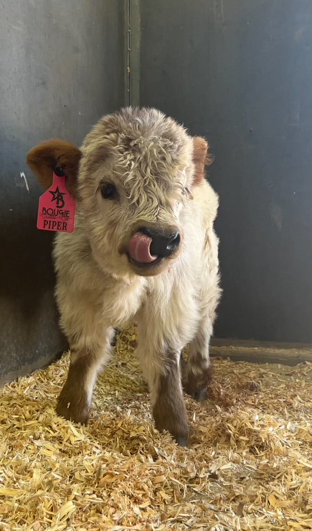 Meet Dunny! This babe is pure highlander with natural blonde highlights! She has all the established highlander appearances, a long thick shaggy coat, the extremly fluffy face and the sweetest dispostion to pass to her offsprings! Dunny has the looks to fit perfectly here at Bougie Cattle Company!