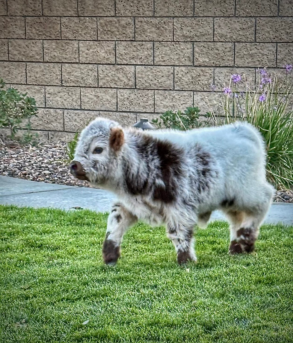 Yellow Jacket is a short in height, thick in width, and heavy with a lot of personality. He comes from the famous Panderosa Miniature Ranch! Yellow Jacket is the first Chondro Positive Cesar son ever offered to the public. Cesar certainly stamped this impeccably built unique cream colored little guy with his heavy double hair coat and adorable face. We are very proud to have him as one of our bougie bulls at Bougie Cattle Company!